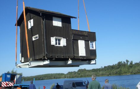 Ende gut, Alles gut! Auch die alte Badehütte, von der man sich nur schweren Herzens trennen wollte, konnte kurz vor Abbruch noch an einen engagierten Nachbarn verkauft werden. Dieser scheute keine Mühen und ermöglichte Transport und Neuaufstellung der Hütte nur drei Grundstücke weiter. So stehen heute alte und neue Hütte fast nebeneinander in erster Reihe der Badesiedlung Greifenstein.